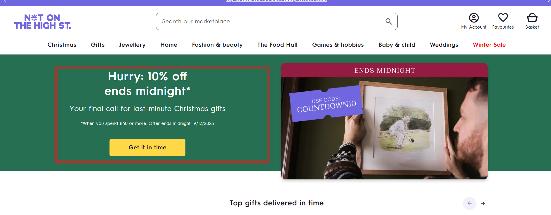 - Example 1: Test visible countdown clocks for shipment cutoffs (“Order by 19 December: Christmas Delivery Guaranteed”) on banners, PDPs and the cart. Convert late-season browsers who need last-minute confirmation.