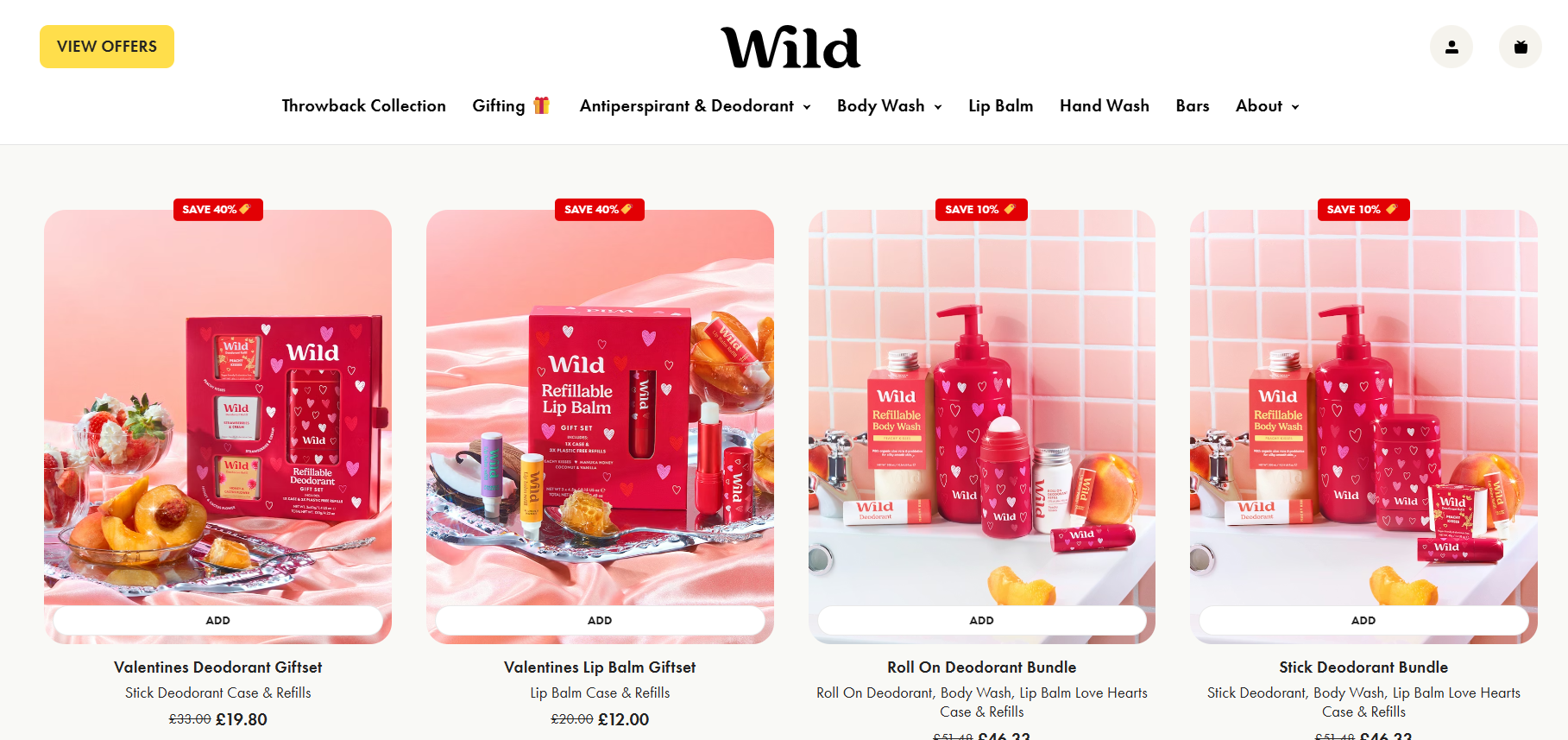 Rather than pushing individual products, Wild packages deodorant, body wash and lip balm into clearly themed gift sets, visually and structurally designed for gifting not refills, not subscriptions, not utility purchases.
